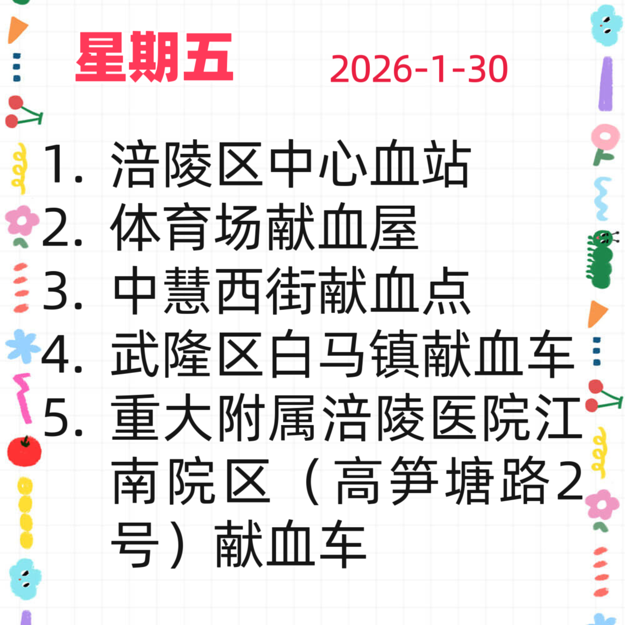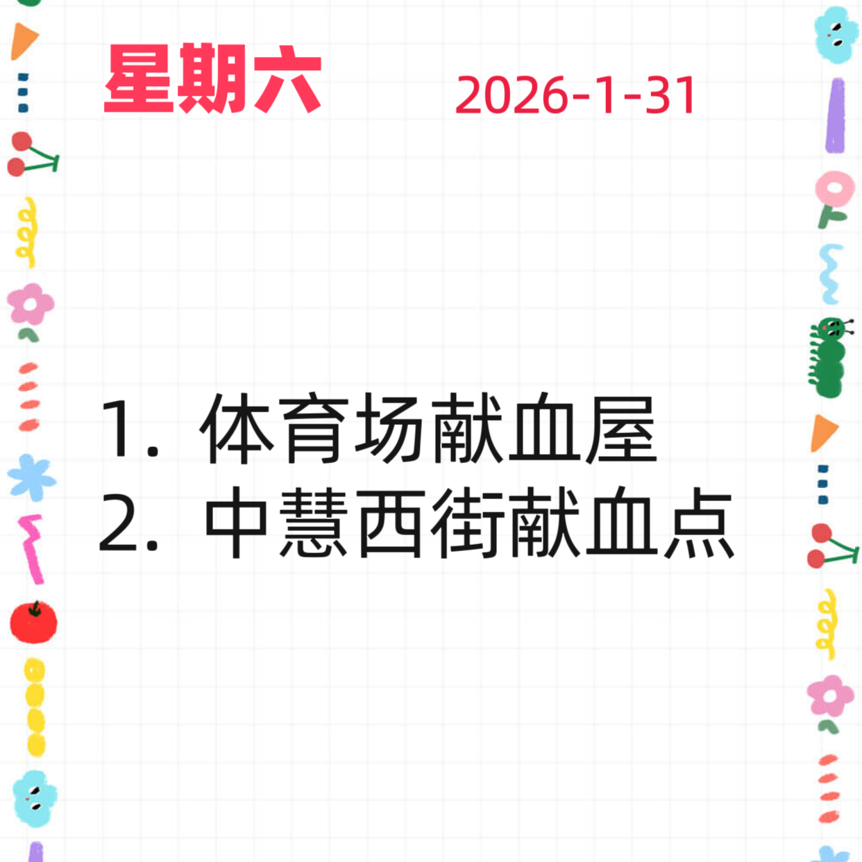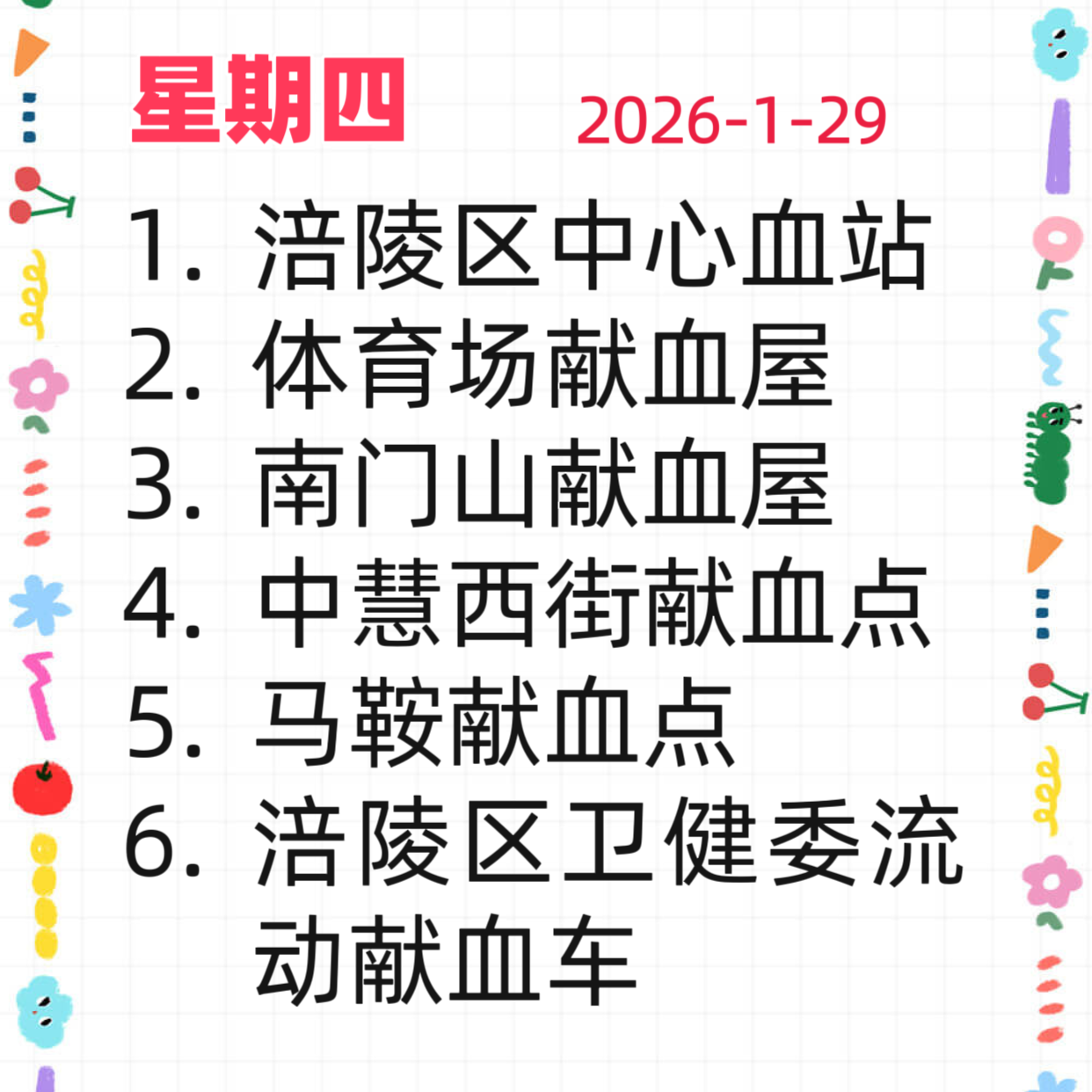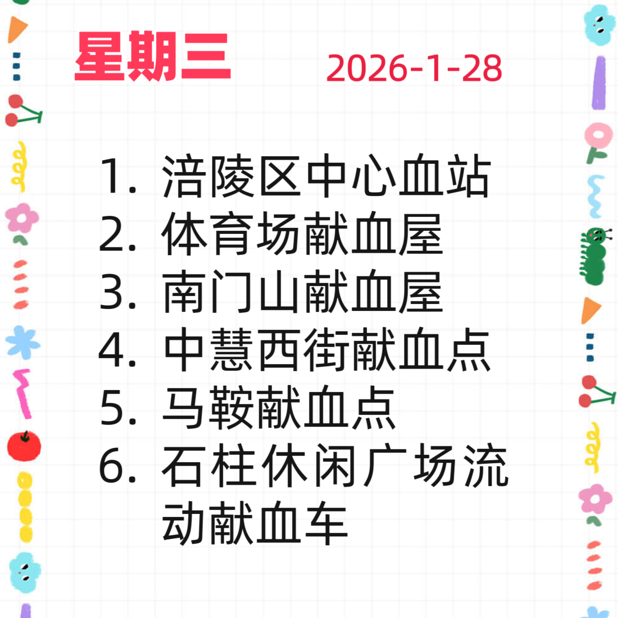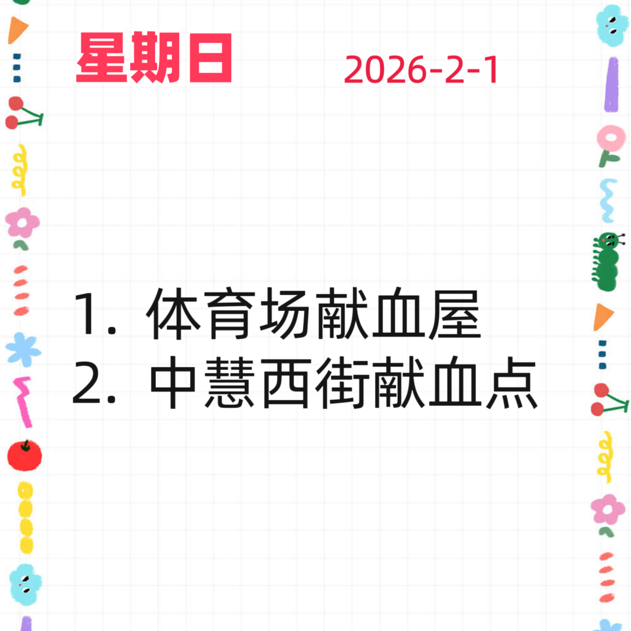 【献血点开放计划】2026年1月28日-2月1日